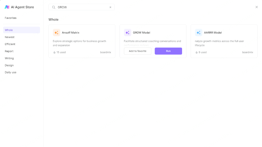 Log in to Boardmix now, input your goal, and experience the AI-generated GROW Model to create your personalized actionable plan in just 3 minutes!