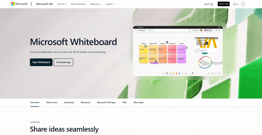 Microsoft's native digital whiteboard is a seamless addition to the Microsoft ecosystem, designed for users who rely on Office 365, Teams, and Windows devices. It prioritizes simplicity and core collaboration over advanced features, making it a low-friction choice for teams that want to add visual collaboration without learning a new complex tool.