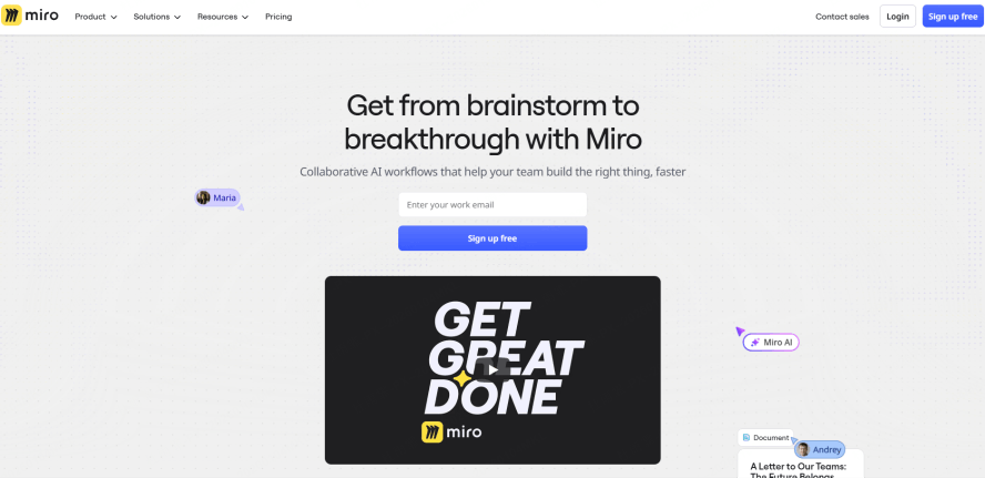 A globally recognized visual collaboration platform, Miro has established itself as a leader in the enterprise space, trusted by companies like Spotify and Salesforce for remote team collaboration, product planning, and agile management. Its strength lies in its robust feature set and scalability, making it suitable for teams of all sizes—from small startups to large multinational corporations.