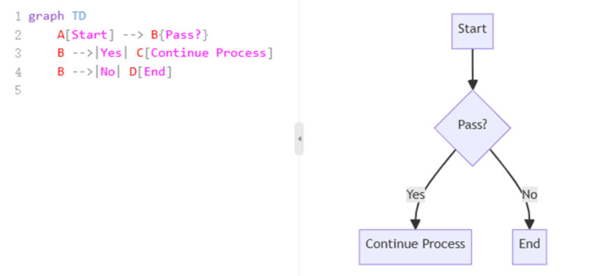 In a Mermaid-compatible editor or platform, the code is automatically parsed into a diagram. You can then export the flowchart as a PNG or SVG file, or embed it directly into your document.
